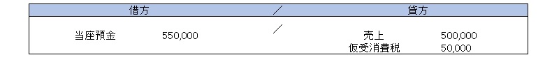 このとき、『売上(収益)』や『役務収益(収益)』と共に受けた消費税が、仮受消費税です。