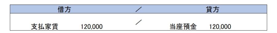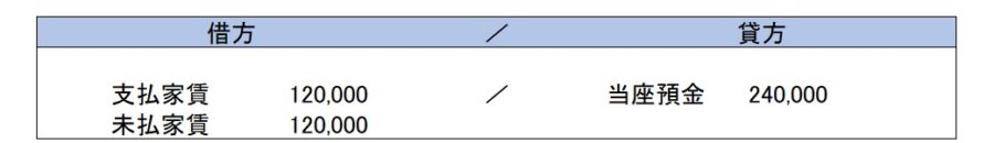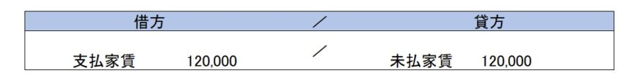 借方の『未払家賃(負債)』は、未払月に費用計上した負債勘定を減少である。