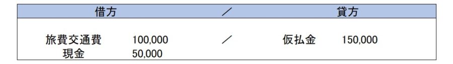 上記の仕訳では、出張に出かける社員に5万円を手渡しているのですが、急な先方からのキャンセルがあれば、出張に出かける必要はありませんので、『仮払金(資産)』は『現金(資産)』に戻すことになります。