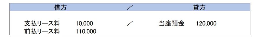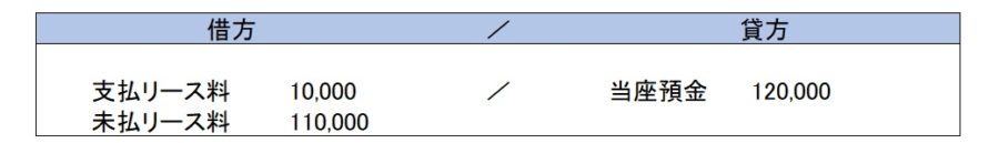 先に年払い契約のリース料を支払った場合は、残りの11か月間は、前払費用を取り崩して毎月の月次計上で費用計上する処理になります。